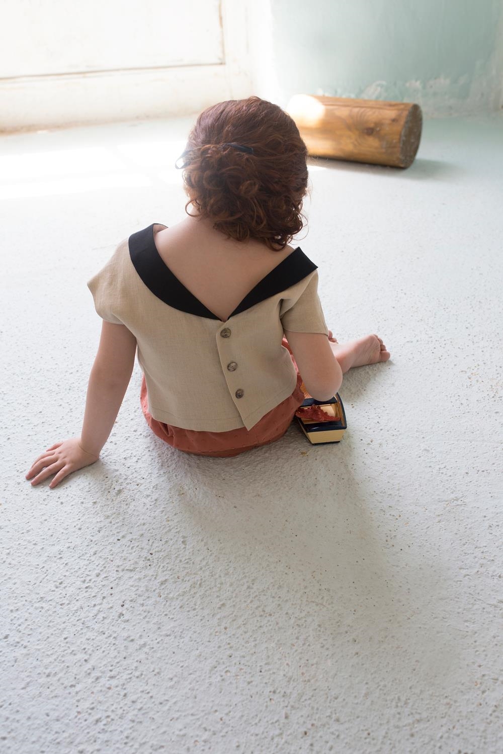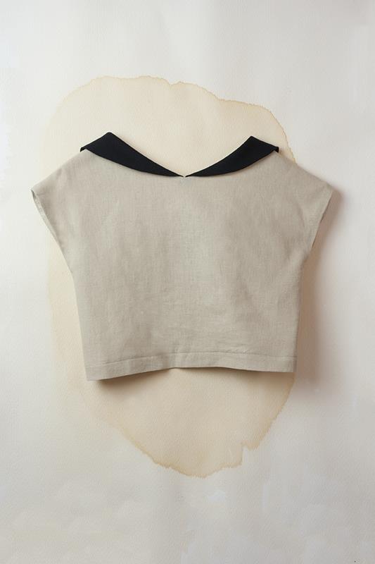Shirt with sailor-style neckline and v-shaped dip at the rear. Cotton lining.