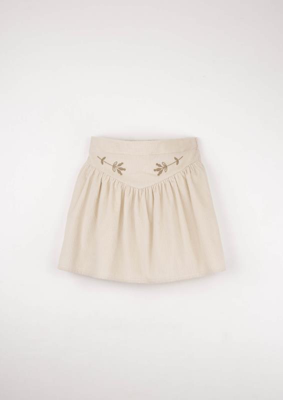 Corduroy short skirt with floral embroidery. Adjustable waist. 100% organic cotton lining.