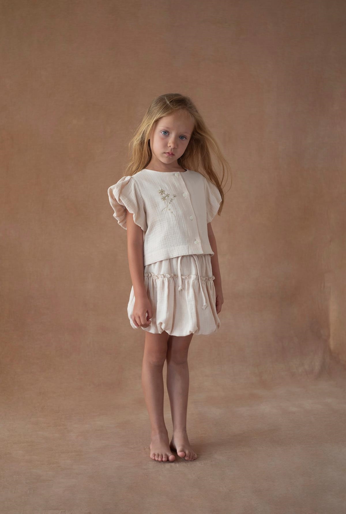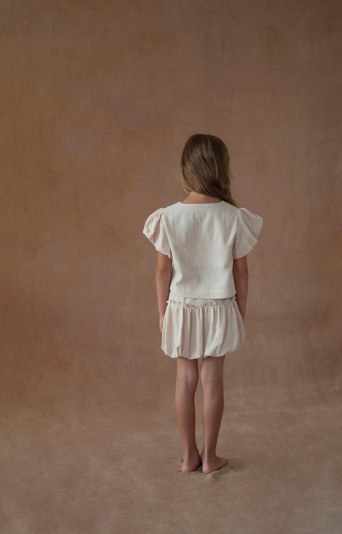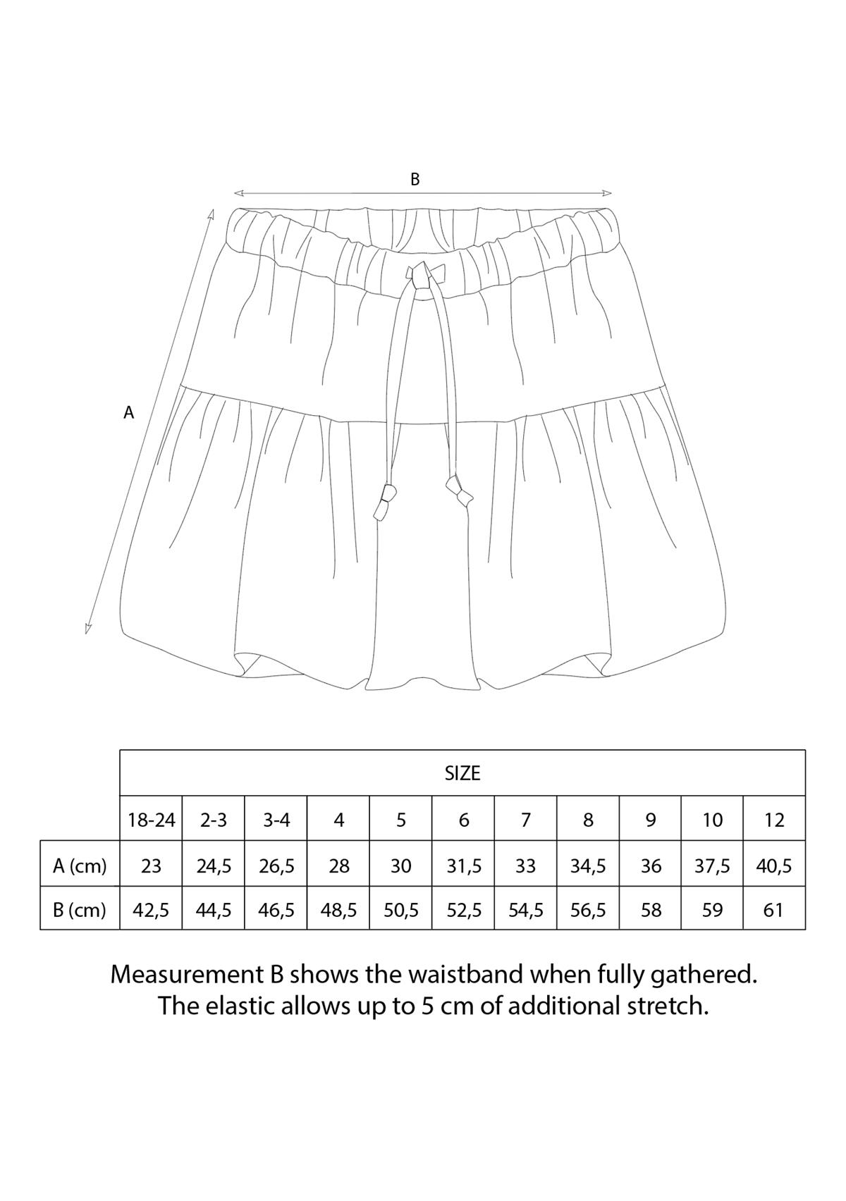 Short puffball skirt. Adjustable drawstring waist. 100% organic cotton lining.