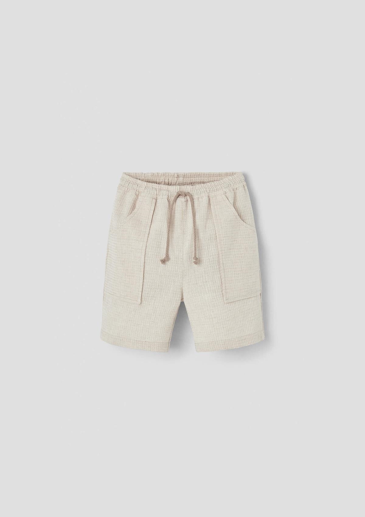 Jogger Bermuda shorts with front and back pockets. Adjustable waist with elastic and drawstring.