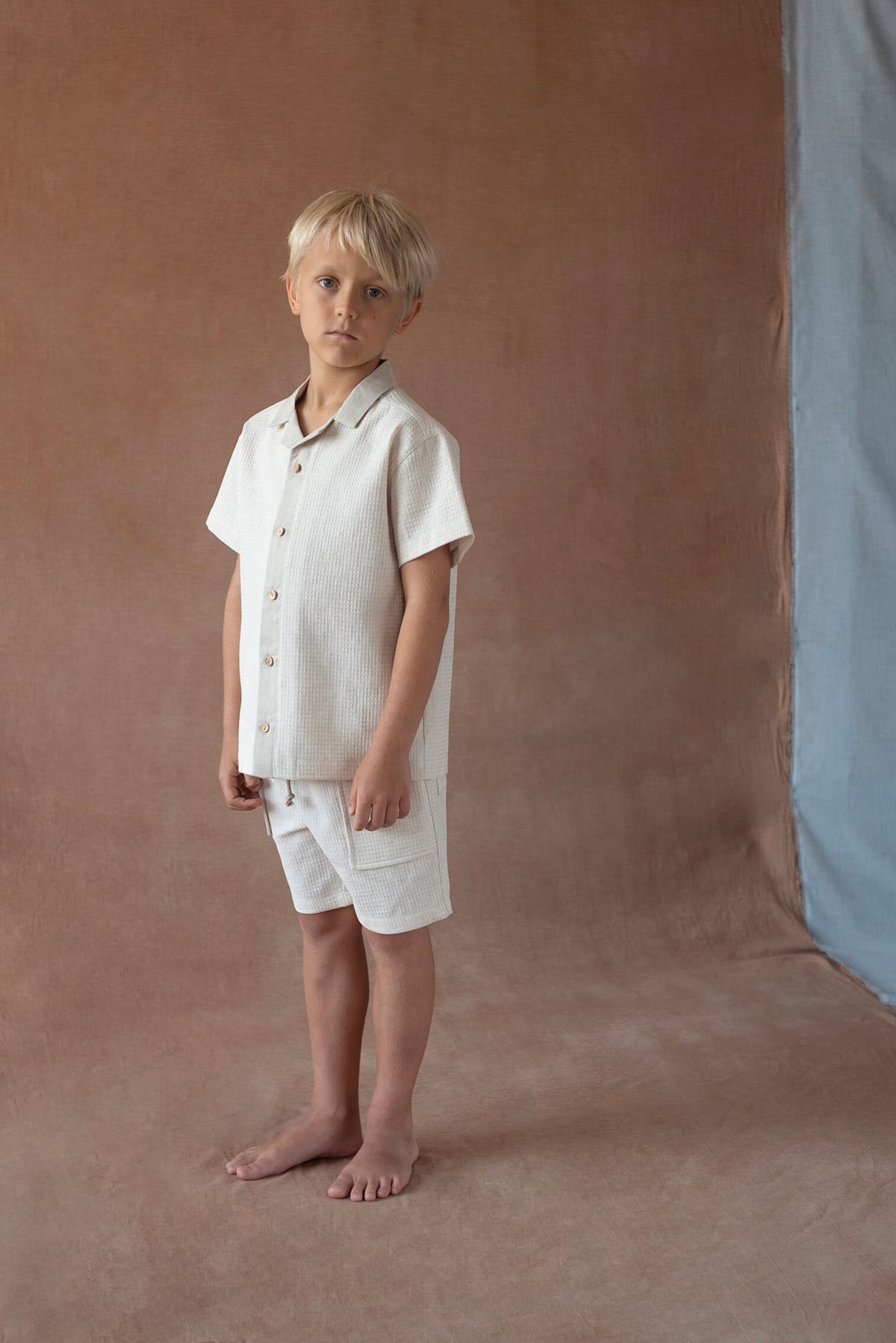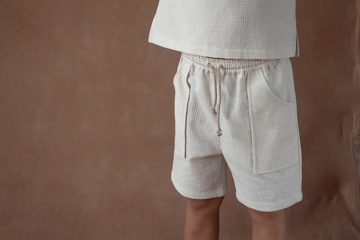 Ref. SS26 Mod.33.1 Sand waffle fabric jogger Bermuda shorts