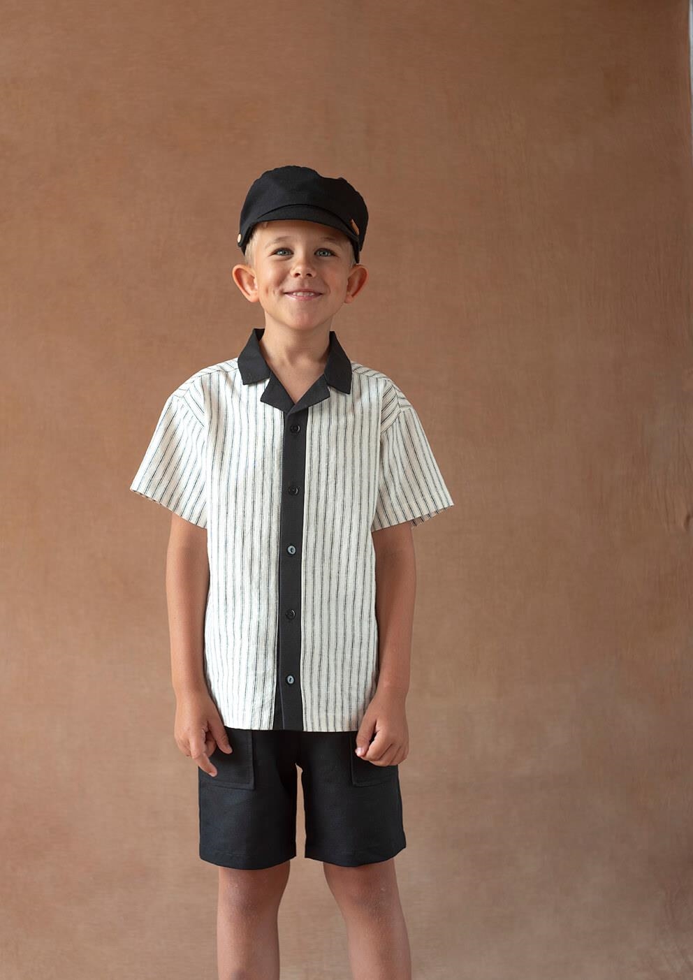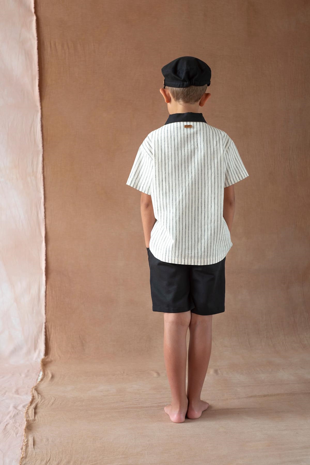 Ref. SS26 Mod.33.6 Black linen jogger Bermuda shorts