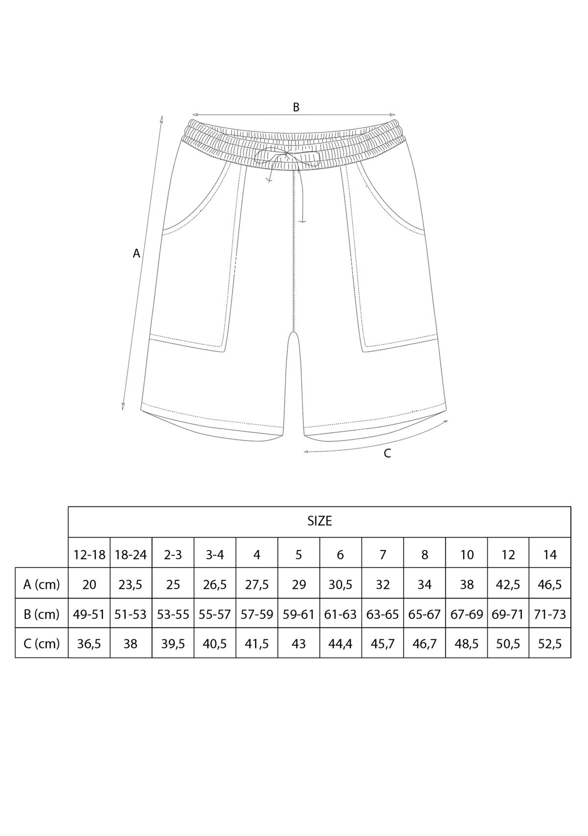 Jogger Bermuda shorts with front and back pockets. Adjustable waist with elastic and drawstring.